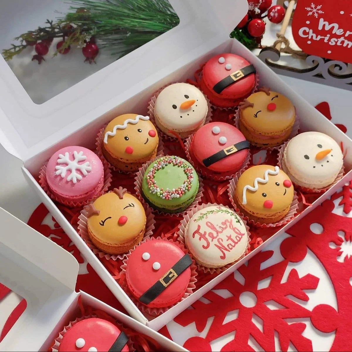 Prepara macarons en forma de árbol y Santa Claus, ideales para regalos gourmet y ventas navideñas exclusivas.